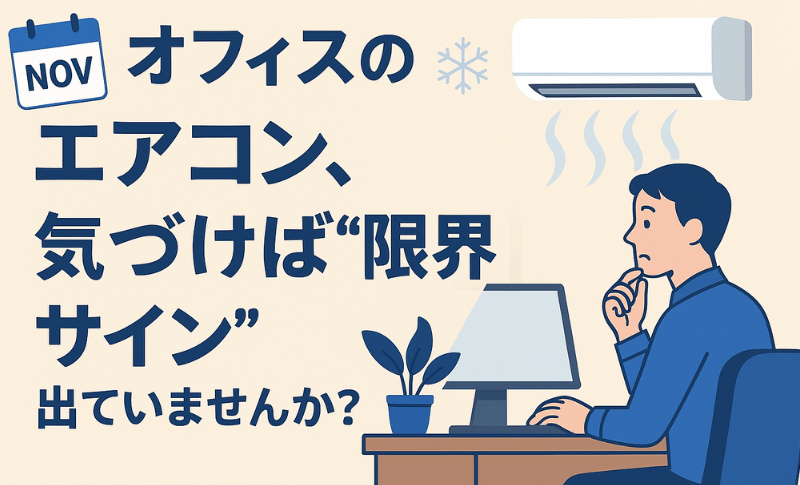 特に、使用10〜12年を超えた業務用エアコンは、内部の基盤・ファンモーター・冷媒配管などの劣化が重なりやすく、故障率が一気に上がる時期に入ります。冬の故障は、オフィスの業務効率や従業員のコンディションに直結し、最悪の場合、作業停止につながるケースも…。